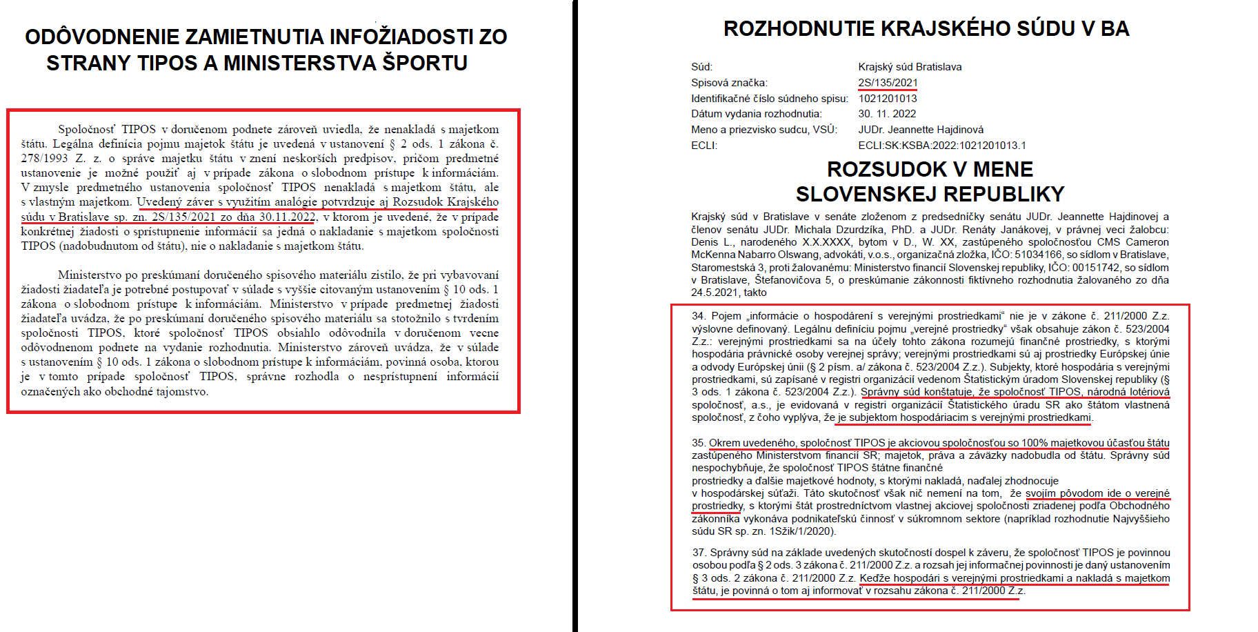 TIPOS a Huliakov rezort si pritom pri takejto argumentácii strelili do vlastnej nohy. Štátna akciovka totiž v odôvodnení argumentuje aj tým, že informačná povinnosť sa na ňu nevzťahuje preto, že nehospodári s majetkom štátu. Odvoláva sa pritom na konkrétny rozsudok Krajského súdu v Bratislave z roku 2022, ktorý si však zrejme jej právnici neprečítali. Súd totiž v tomto verditke konštatoval úplný opak, a síce, že spoločnosť TIPOS je subjektom hospodárenia s verejnými prostriedkami a je povinná o tom aj informovať v rozsahu Infozákona.