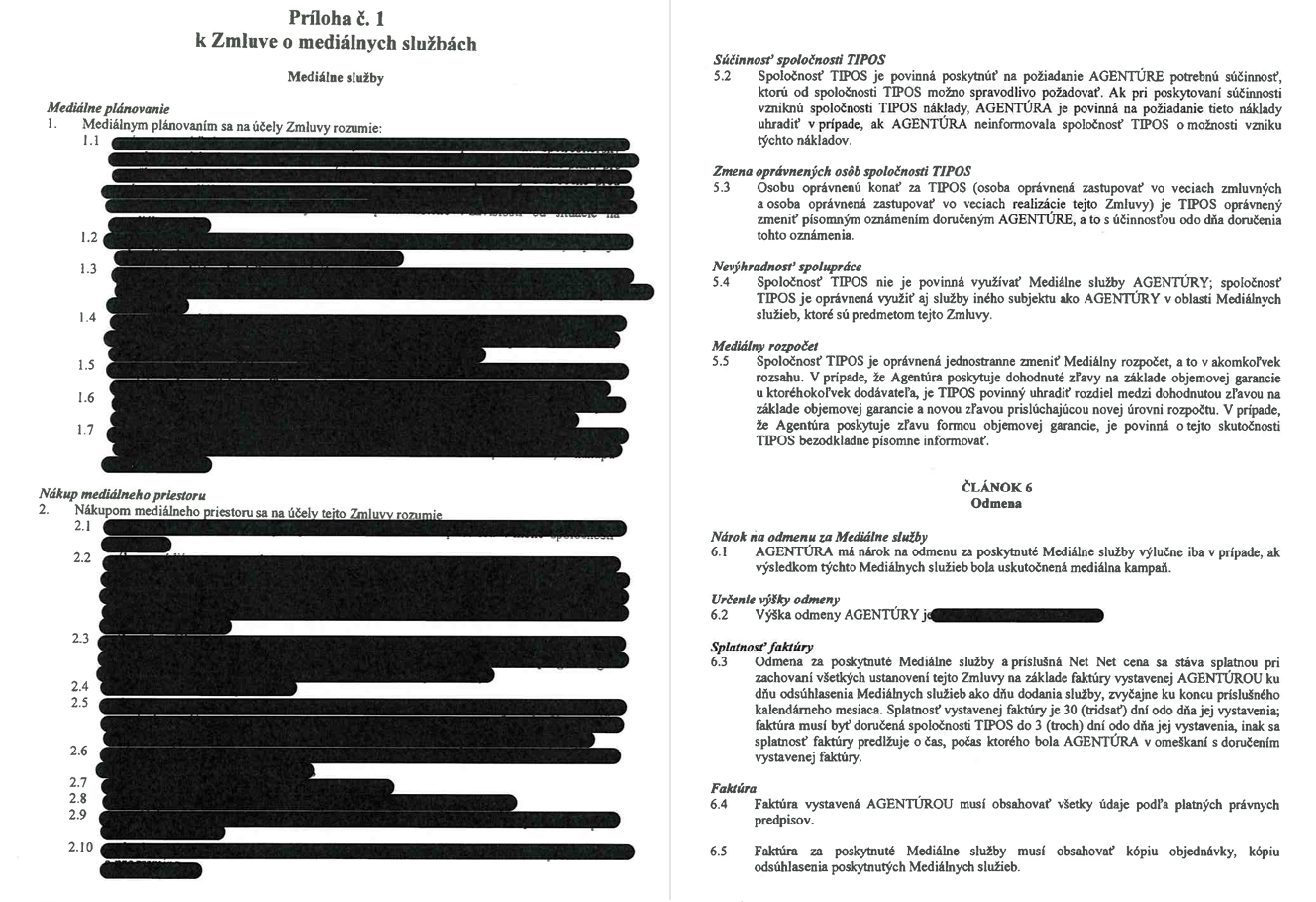 Štátna akciovka investuje milióny do reklamy cez 15 rokov starú neverejnú zmluvu, ktorú bola ochotná sprístupniť iba s vyčiernenými kľúčovými pasážami.