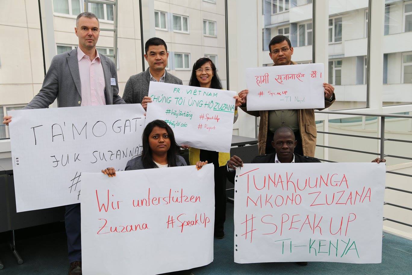 Desiatky protikorupčných aktivistov Transparency International od Nepálu cez Litvu po Honduras podporujú rozhodnutie a odvahu Zuzany Hlávkovej bojovať proti bezpráviu.